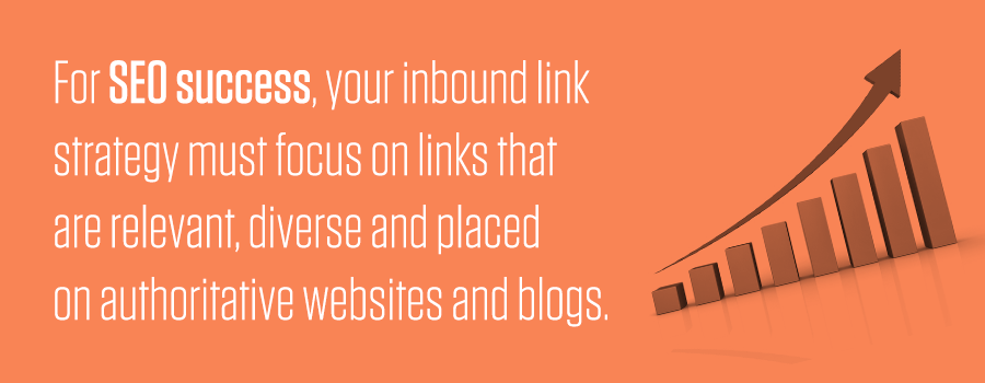 In the old days, any inbound link was a good inbound link. Today, quality is as important as quantity. In fact, Google might penalize you for having certain kinds of links. For SEO success, your inbound link strategy must focus on links that are relevant, diverse and placed on authoritative websites and blogs.