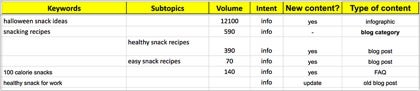 To put all these labels together, here's an example of my keyword worksheet that I use to plan my content: