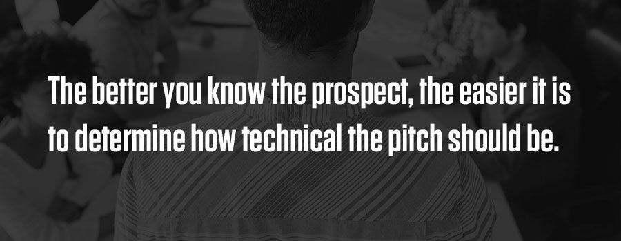The better you know the prospect, the easier it is to determine how technical the pitch should be. Some prospects have no interest at all in hearing about the technical details of an SEO or PPC campaign; others want to talk about nothing else. Some prospects are well informed about the ins and outs of Internet marketing; others admit they know very little.