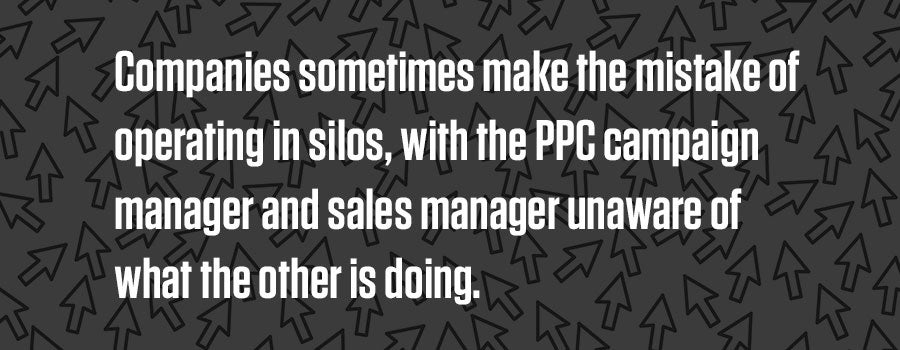 Whether you’re running a PPC campaign now or are contemplating one to help your sales team as described here, it’s obviously important to communicate internally. Companies sometimes make the mistake of operating in silos, with the PPC campaign manager and sales manager unaware of what the other is doing.