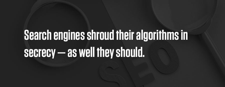 Search engines shroud their algorithms in secrecy — as well they should. If people knew exactly how rankings were calculated, everyone with a website would manipulate the system to death and search engine users would wind up getting inferior results every time they conducted a search.
