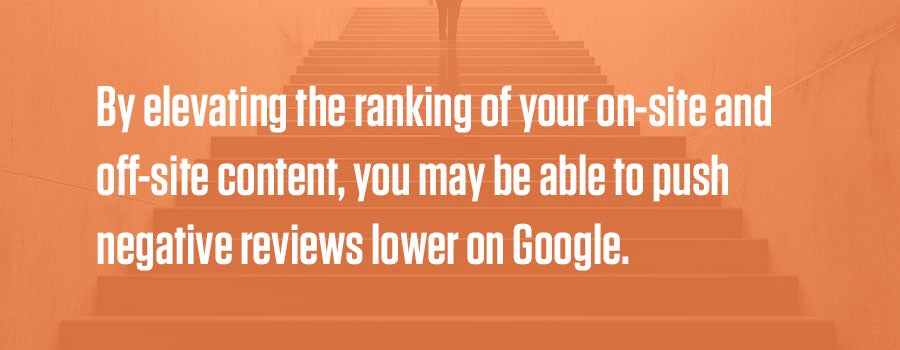 Incidentally, an excellent fringe benefit of SEO is that by elevating the ranking of your on-site and off-site content, you may be able to push negative reviews lower on Google. For some companies, this benefit is a primary driver of their decision to invest in SEO. Whether or not SEO is right for you, silence in the face of negative reviews is a suicidal online marketing and branding strategy.