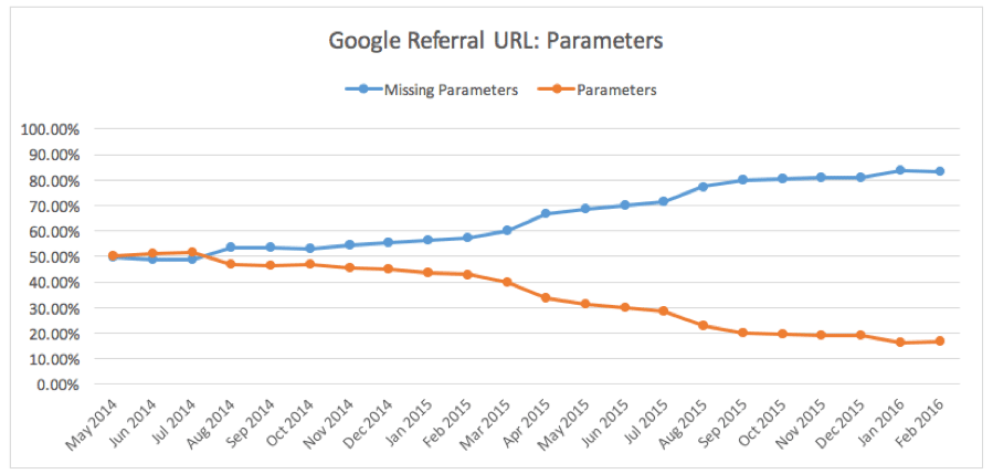 As of February 2016, we are seeing only 16.75 percent of referral URLs includes parameters and 83.25 percent does not include any parameters.