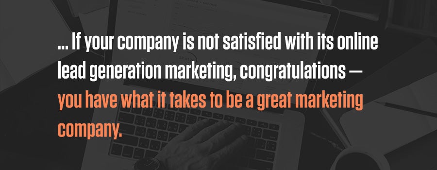So, if your company is not satisfied with its online lead generation marketing, congratulations — you have what it takes to be a great marketing company. To take your marketing to the next level, focus on these things: