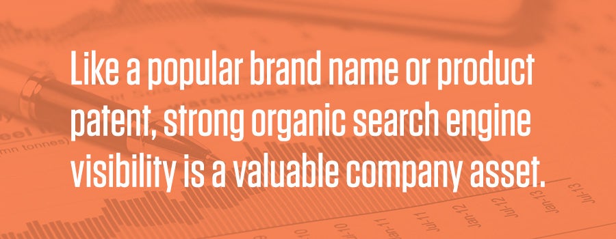 Like a popular brand name or product patent, strong organic search engine visibility is a valuable company asset.