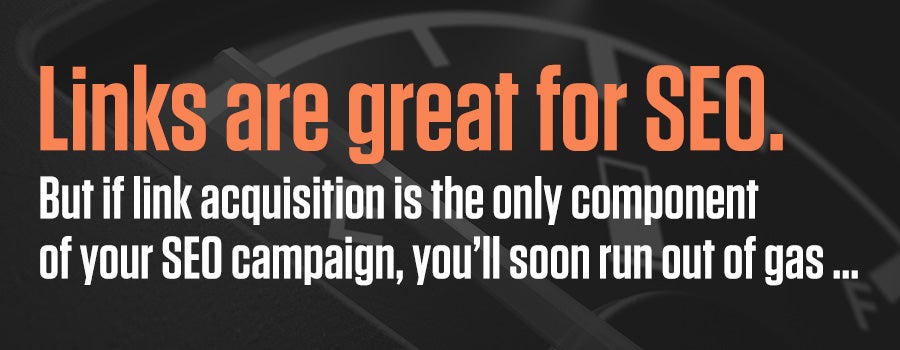 Links are great for SEO. But if link acquisition is the only component of your SEO campaign, you’ll soon run out of gas — possibly before you get out of your driveway.