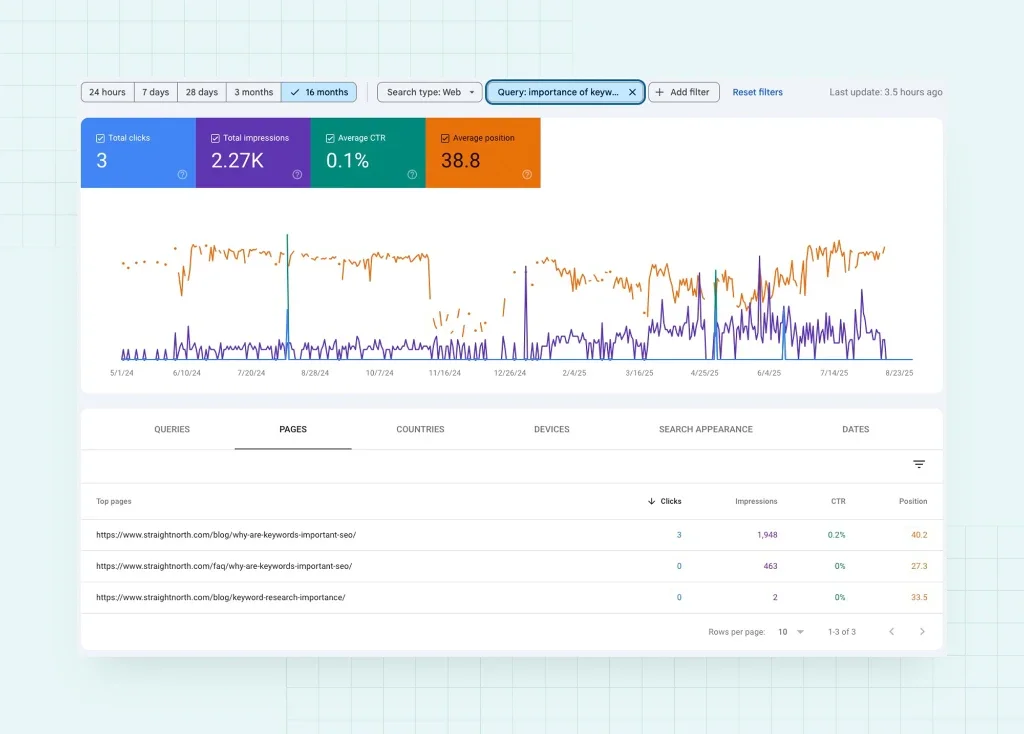 Now you have your content and pages ready to go, but you need to check that the right pages are showing up on Google. Time to break out the query filter in Search Console.