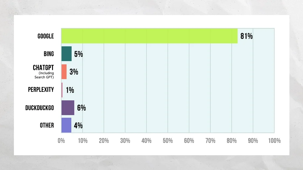 AI-powered platforms accounted for less than 4% of all respondents – ChatGPT/SearchGPT made up less than 3%, while Perplexity came in at under 1%.