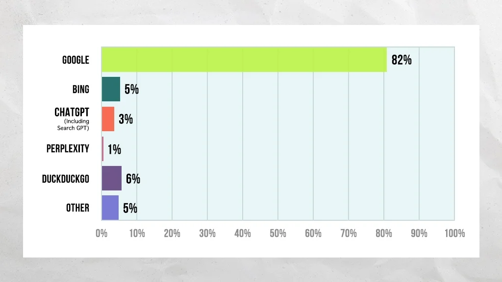 Overall, the results weren’t too surprising. Google remains the dominant player, and DuckDuckGo may have more market share than typically reported. AI-powered platforms are gaining traction, but they’re not as widely used as I expected.