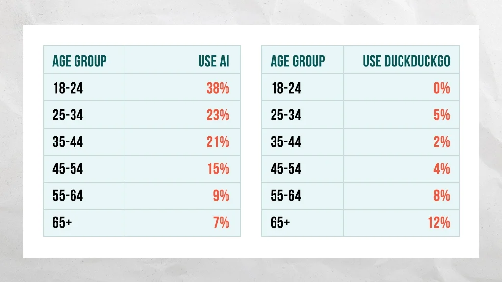 On the flip side, DuckDuckGo usage increases with age.