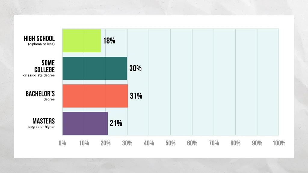 For reference, here is the population distribution by education level: