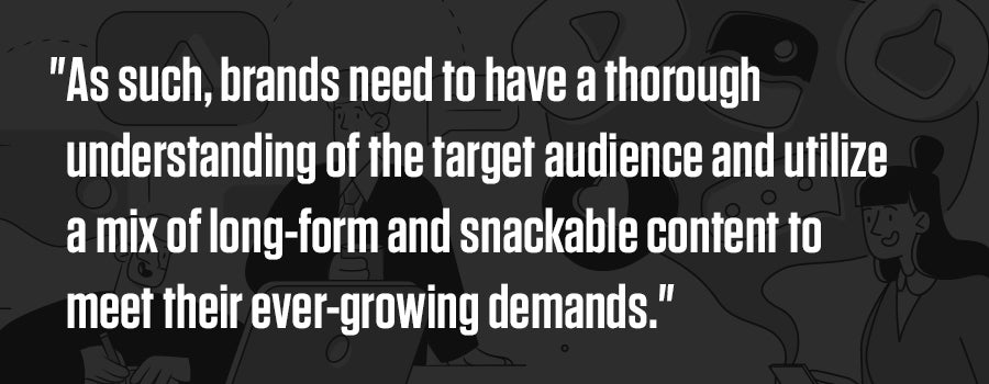 In the end, both forms of content can be rewarding when positioned in the appropriate situation or setting. As such, brands need to have a thorough understanding of the target audience and utilize a mix of long-form and snackable content to meet their ever-growing demands.
