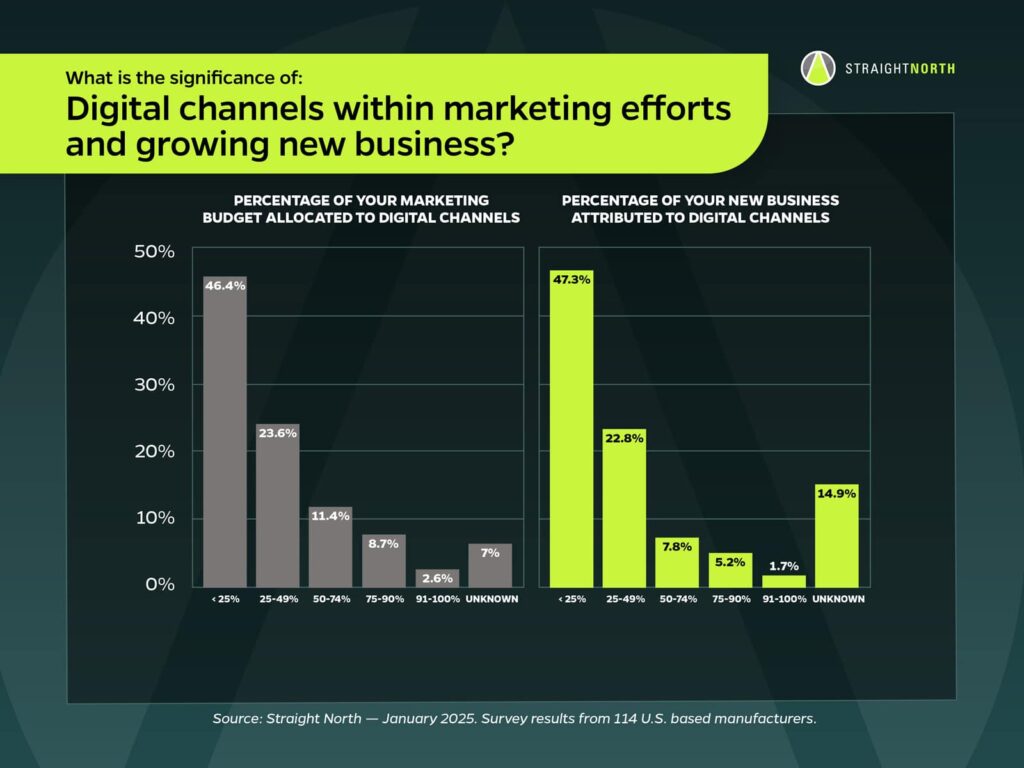 Admittedly, I'm a bit biased given that Straight North is a digital marketing agency, but these findings underscore the growth opportunity manufacturers have by increasing their digital marketing investments.