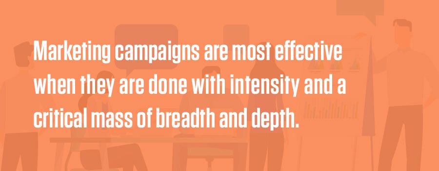 One aspect of marketing where less is definitely more occurs when a company is spreading its marketing efforts too thin. Marketing campaigns are most effective when they are done with intensity and a critical mass of breadth and depth. In contrast, just scratching the surface with social media, SEO or email, etc., is likely to produce minimal or no ROI.
