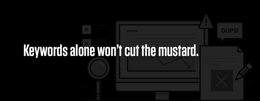 - It’s all about keywords. Keywords alone won’t cut the mustard. Content quality matters, and Google is trying hard to make quality matter even more.