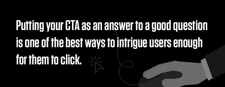 Putting your CTA as an answer to a good question is one of the best ways to intrigue users enough for them to click. Questions have been found to eliminate a human being’s protective mechanism, making them look for an answer.