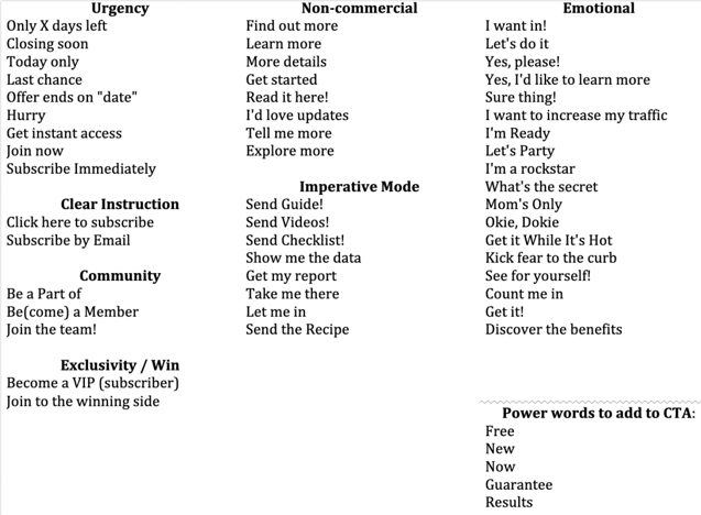 Here’s a huge downloadable collection of ways you can write calls to action for it to trigger action.