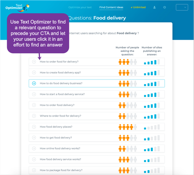 TextOptimizer is a great way to find popular relevant questions for which your target customers are seeking answers: