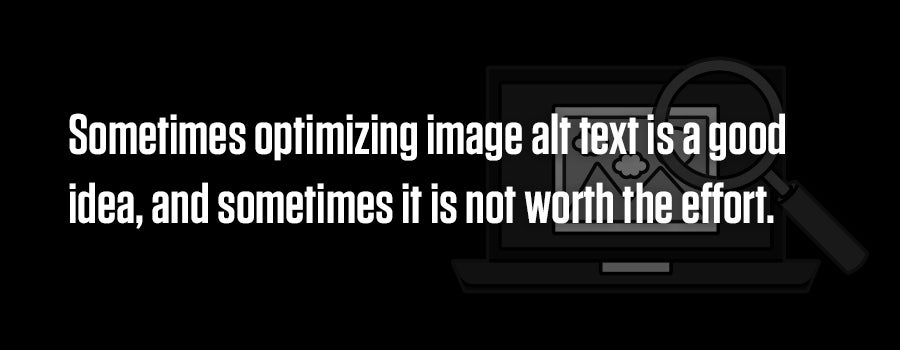 Image alt text can be useful for SEO, which is the topic of this post. You may have seen SEO advice telling you all images on your website should have optimized alt text. This is not always the case. Sometimes optimizing image alt text is a good idea, and sometimes it is not worth the effort.