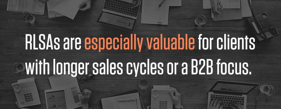 RLSAs are especially valuable for clients with longer sales cycles or a B2B focus. Think about one user doing his/her research looking for the best solution: The user clicks one ad after another, one organic link after another, and doesn’t end up actually contacting any advertiser. RLSA allows you — the advertiser — to ensure you stand out to this very valuable user the next time, when the user is a step further into the buying cycle. With RLSA, advertisers can offer unique incentives for returning users or ensure their ad is in top positioning for returning users.