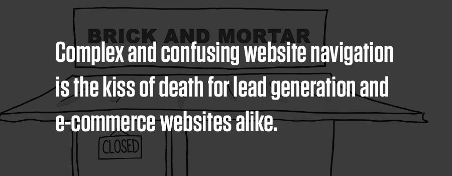 - If wandering around a 150,000-square-foot superstore trying to find a box of nails is like looking for a needle in a haystack, the next thing you’re sure to be looking for is another hardware store. In the same way, complex and confusing website navigation is the kiss of death for lead generation and e-commerce websites alike.