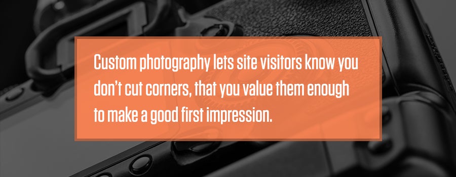 Custom photography lets site visitors know you don’t cut corners, that you value them enough to make a good first impression. No company wants a reputation for being cheapskates.
