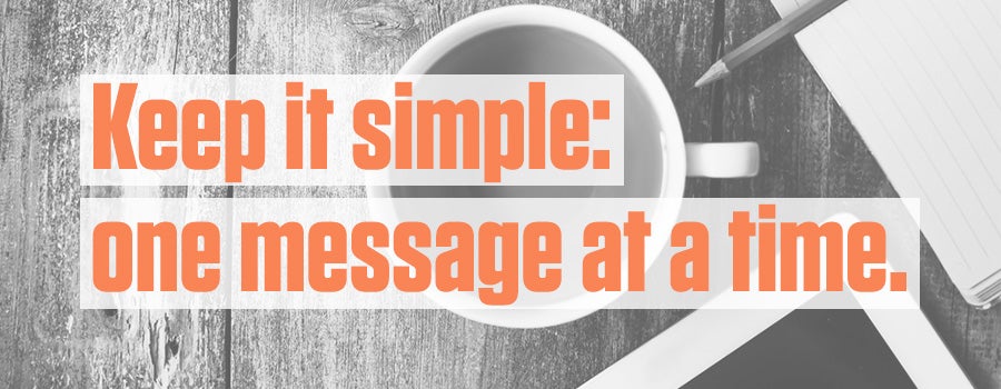 - Keep it simple: one message at a time. Giving users three options to choose from only decreases the chances of them clicking on the one you really want them to.