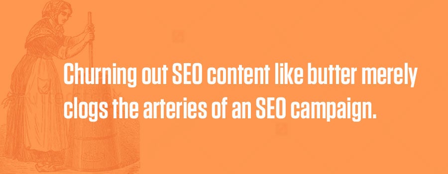 - Churning out SEO content like butter merely clogs the arteries of an SEO campaign. As with backlinks, Google is more interested in a healthy dose of quality than a heaping helping of nonsensical, keyword-stuffed blog posts and web pages. In fact, one of the most successful SEO tactics going involves creating ultra-high-quality “content assets” that can be promoted to numerous off-site publishers (we will be coming back to this topic in the future).