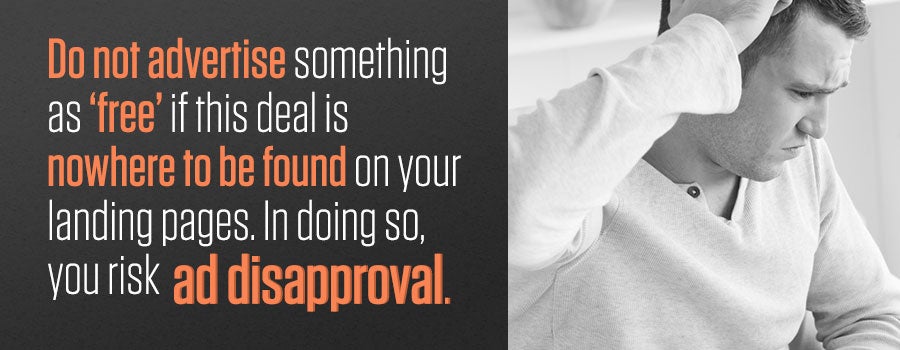 If you have a great promotion for 20 percent off all iPhone 6s, don’t use the promotion campaign-wide. This will just infuriate users and maybe even Google. Also, do not advertise something as “free” if this deal is nowhere to be found on your landing pages. In doing so, you risk ad disapproval.