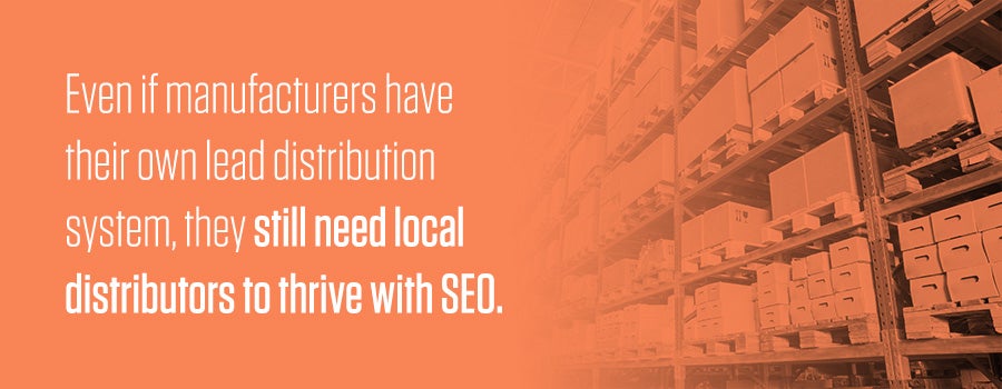 Even if manufacturers have their own lead distribution system, they still need local distributors to thrive with SEO. Why? Because local SEO has become an enormously important factor for organic lead generation.
