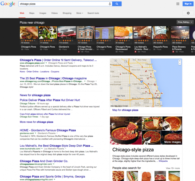 2. In this search for "chicago pizza", the image-heavy local results are irresistible: