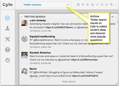 To monitor Twitter trends efficiently, I use Cyfe because it puts all my Twitter searches in an archive for my team to refer to when it needs to cover all the hot trends for a month: