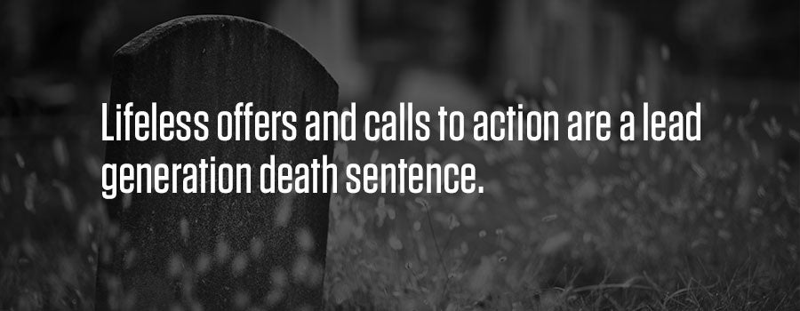 This is why lifeless offers and calls to action are a lead generation death sentence. Saying, “Call now to talk to a sales representative” is OK if the prospect is favorably disposed and ready to buy. However, what if the prospect is thinking, “I don’t want to get tied up talking to a pushy salesperson. If I make the request, the person will never leave me alone.” It’s likely far more prospects will have the latter mindset.