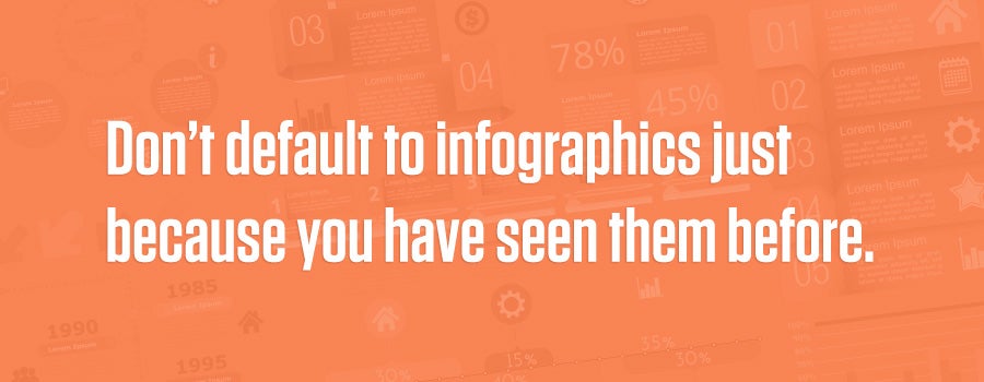 There are also a few other content types that can be used to best match the topic. To pull off this content marketing technique and maximize efficiency, you must match your content type to your topic. Don’t default to infographics just because you have seen them before.