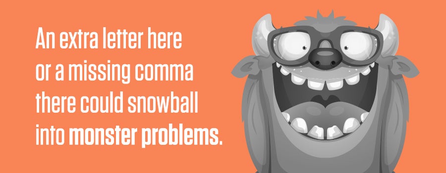From missing hyphens to misspelled words, these errors suggest no company or organization is exempt from a mistake. Lesson learned: An extra letter here or a missing comma there could snowball into monster problems.