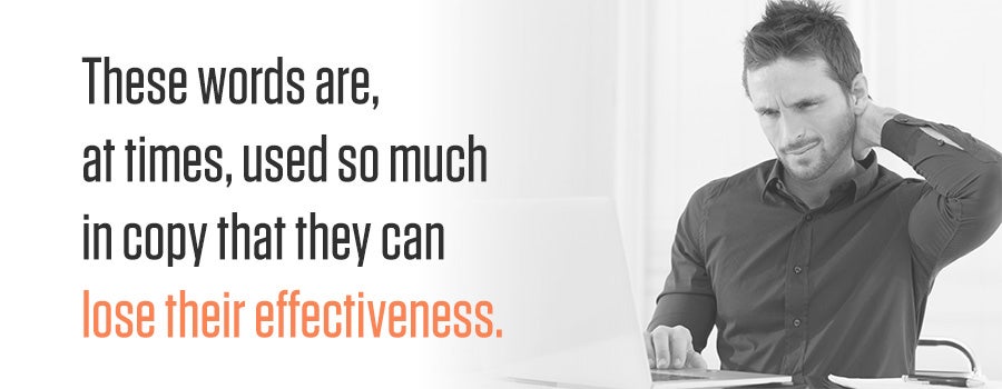 However, these words are, at times, used so much in copy that they can lose their effectiveness. Of course, arguments can be made for why these words should be used. This is not a black-and-white issue. In most cases, though, they can be erased from a sentence and the meaning will stay the same and/or improve — especially for business-specific copy. Take a look at the following examples and you’ll understand why these words are overused.