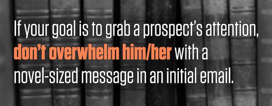 If possible, keep messages brief — it leaves less room for confusion. Fast Company recommends limiting emails to no more than five sentences. This isn’t to say the rule should always be followed, but if your goal is to grab a prospect’s attention, don’t overwhelm him/her with a novel-sized message in an initial email. Plus, it’s easier to proofread and make sure it is error-free.