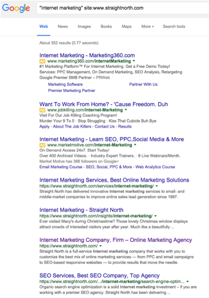 … it would look like this: "Internet marketing company" site:www.straightnorth.com