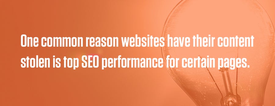 One common reason websites have their content stolen is top SEO performance for certain pages. When looking for inspiration to write website content, many copywriters, web designers and business owners search Google to find examples of quality copy. Other times, people assume your content is why your page ranks so high in Google — and then they steal your content to place on their website in an attempt to rank where your website ranks.