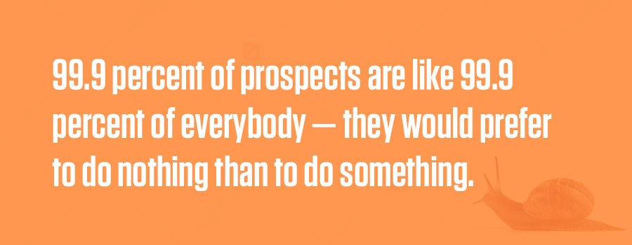 This is because 99.9 percent of prospects are like 99.9 percent of everybody — they would prefer to do nothing than to do something.