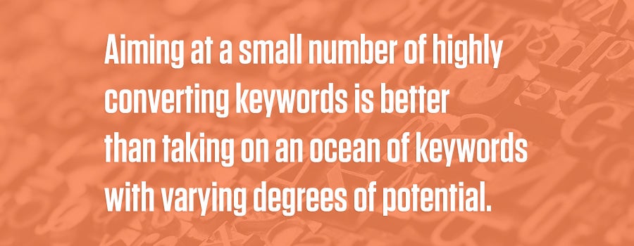 The same holds true in SEO. Aiming at a small number of highly converting keywords is better than taking on an ocean of keywords with varying degrees of potential.