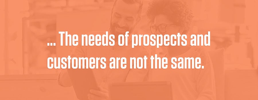 - Prospects need to understand the basics of your products and services, whereas customers already know them.