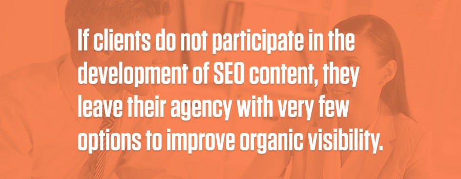 If clients do not participate in the development of SEO content, they leave their agency with very few options to improve organic visibility.