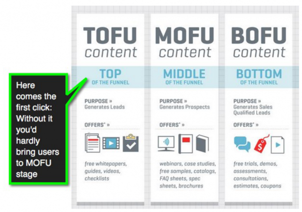 A click is at the top of your conversion funnel: If we take a well-known TOFU->MOFU->BOFU concept, a click is right at the TOFU stage: