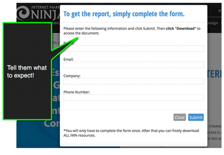 This way they know exactly what will happen on the next page, and will see right away that it won’t take any real time to follow through on their initial interest.