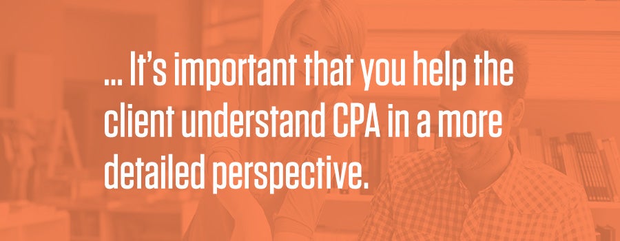 First off, it’s important that you help the client understand CPA in a more detailed perspective. Most clients will inherently view CPA from the following simple formula: