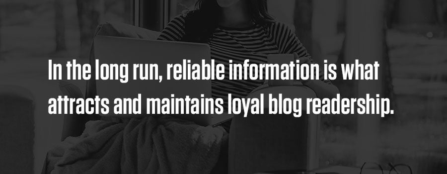 - Don’t go for sensationalism. Coming up with a fantastic title or shocking idea may attract a lot of readers, but if the underlying ideas are based on poor data (or none at all), you’re not really helping readers — potentially, you’re harming them. In the long run, reliable information is what attracts and maintains loyal blog readership.
