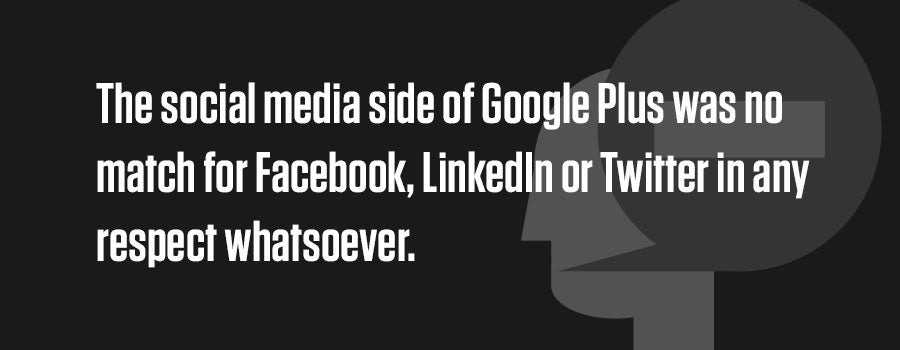 As an SEO agency with a heavy focus on content marketing, we were quite active on Google Plus and eager to see it succeed. But there were a ton of challenges. The ones that stood out in my experience: