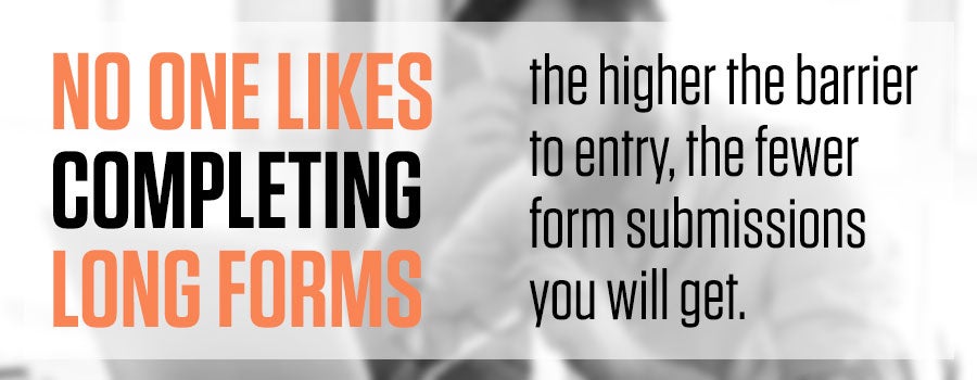 This one isn’t rocket science. Keep form fields to a minimum. I understand that you might want to get more information from the user at this point, but now is not the time. Get his name, email address and phone number before you lose him. After obtaining that, your sales team can get the rest of his information via phone or email. The most important objective at this point is to capture the main contact info before he changes his mind. No one likes completing long forms — the higher the barrier to entry, the fewer form submissions you will get.