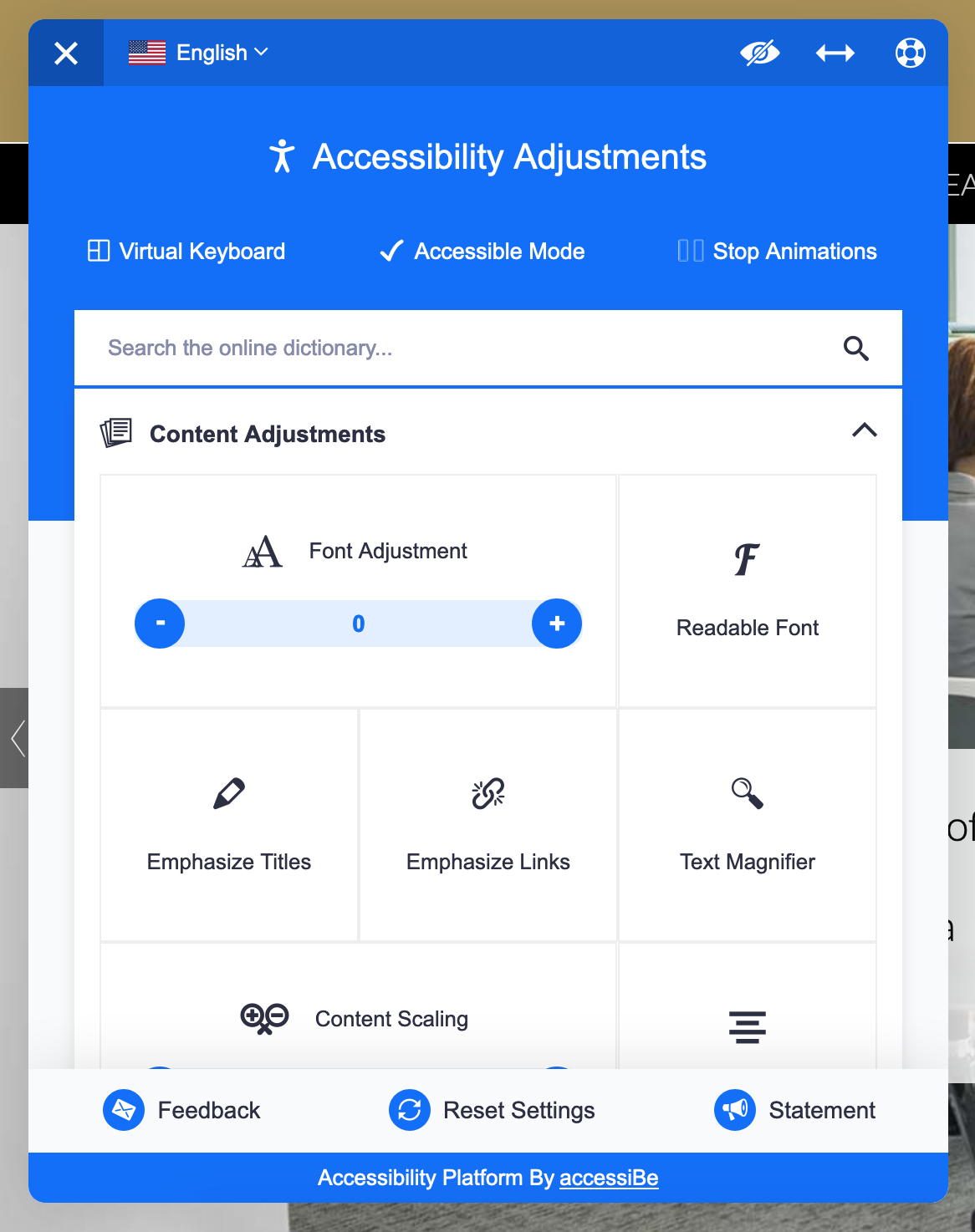 accessiBe is a multi-feature solution that will automatically find and optimize all your site elements, not just forms. With it you will make the entire site accessible, from images to navigation menus — so your disabled users will find it easier (or even possible) to navigate your site and opt in when they feel like: